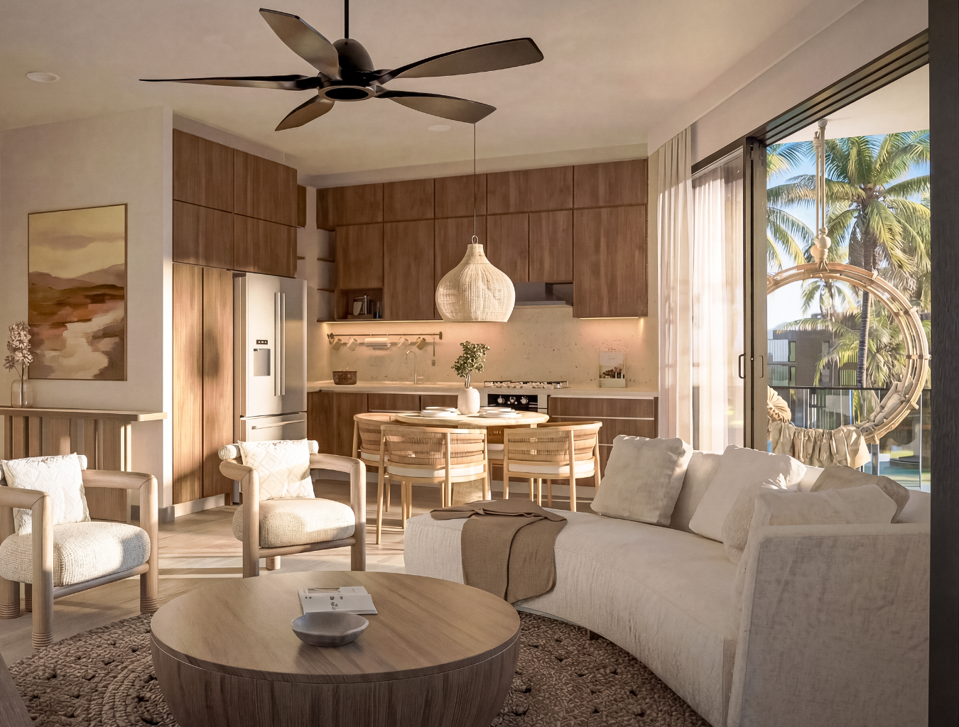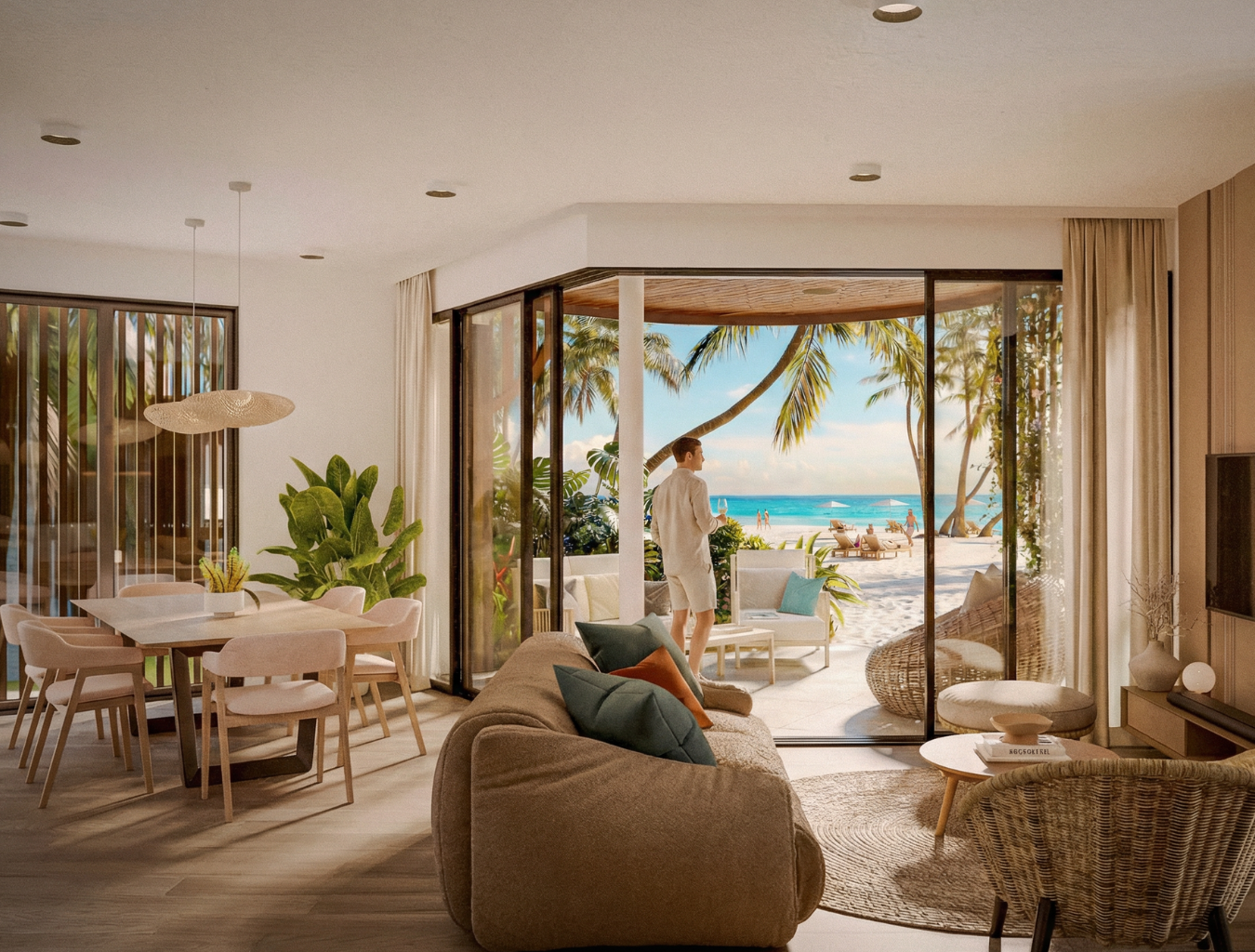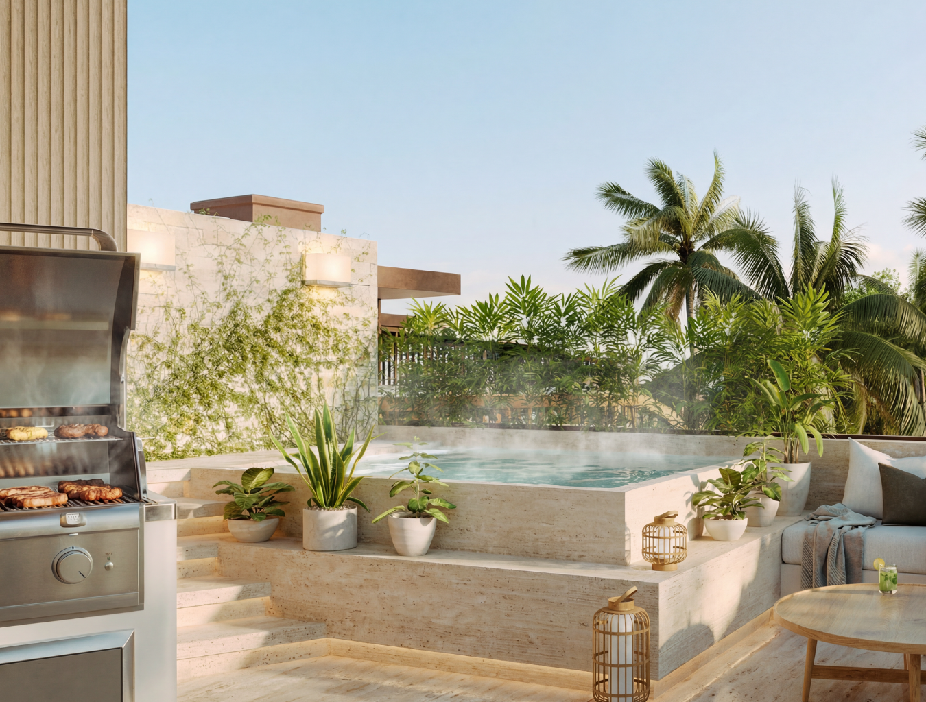 Nuestros apartamentos están diseñados para integrarse armónicamente al entorno y ofrecer una experiencia de bienestar total. Cuentan con ascensor, escalera común, fachada bioclimática y fácil acceso a piscina y playa. Las unidades de 3 habitaciones incluyen doble acceso y terminaciones de lujo.